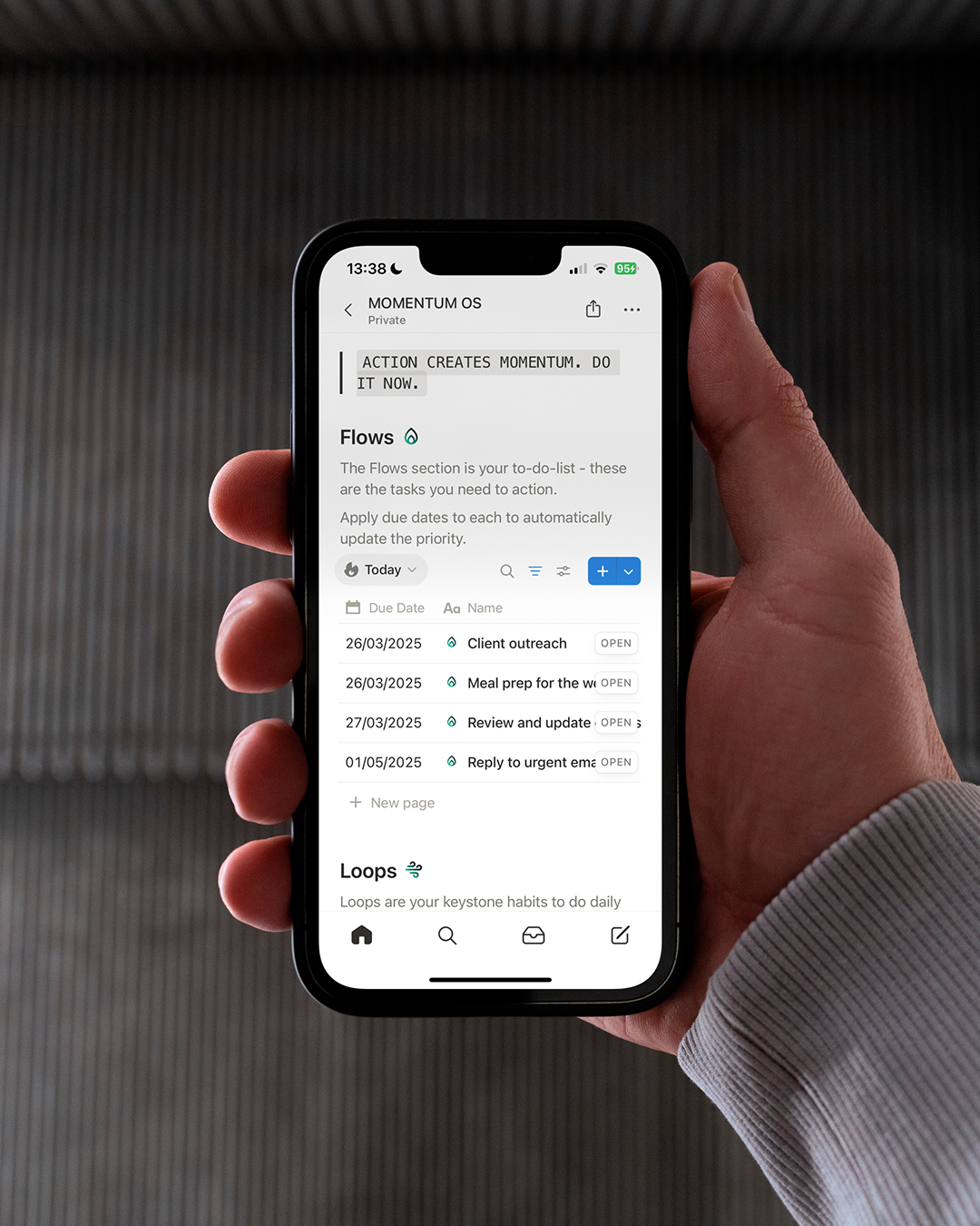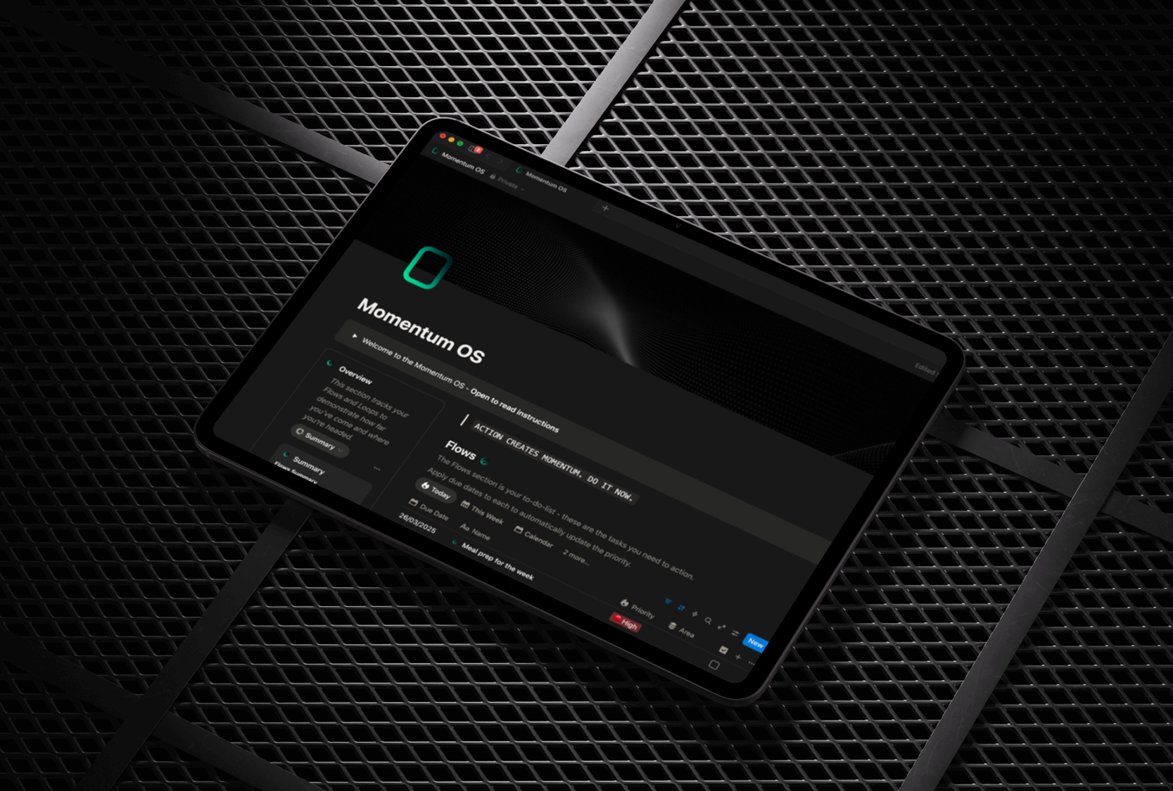 You're ambitious, working hard in a job with a side hustle, aiming to improve financially, physically, and mentally. But stress, procrastination, and a lack of clarity are holding you back. You want control over your time, your goals, and your future. Momentum OS is your system to make that happen.